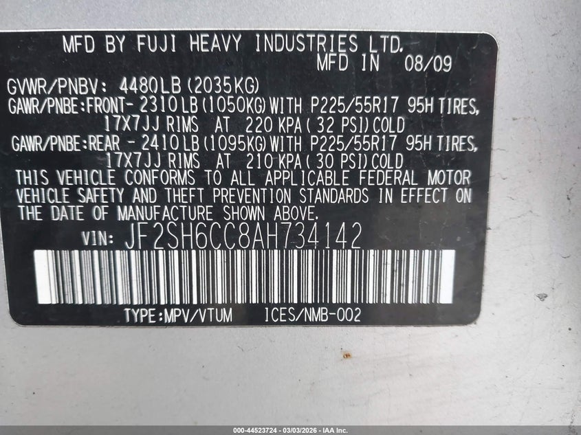 • JF2SH6CC8AH734142