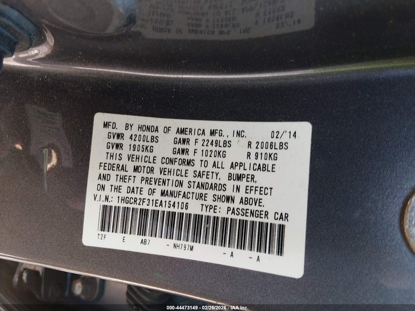 • 1HGCR2F31EA154106