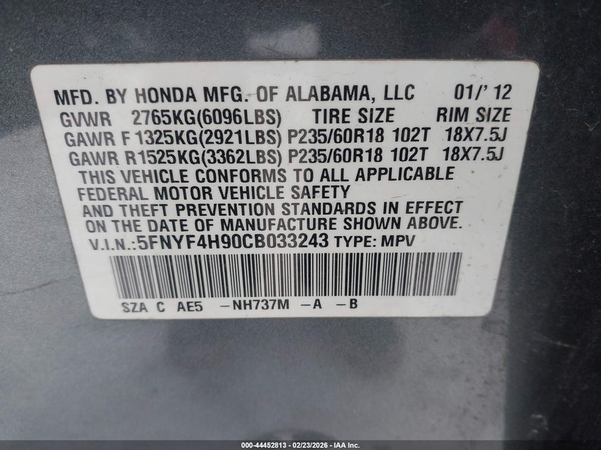 • 5FNYF4H90CB033243