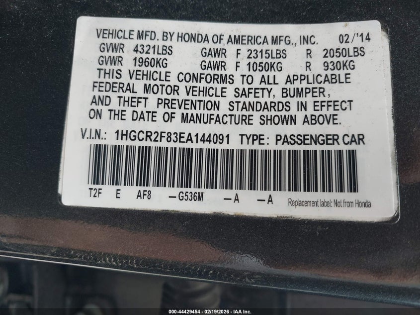 • 1HGCR2F83EA144091