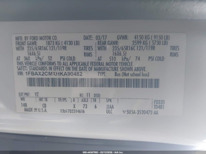 • 1FBAX2CMXHKA90482