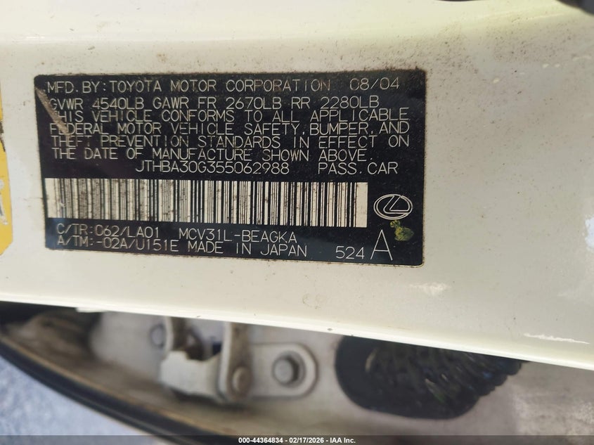• JTHBA30G355062988