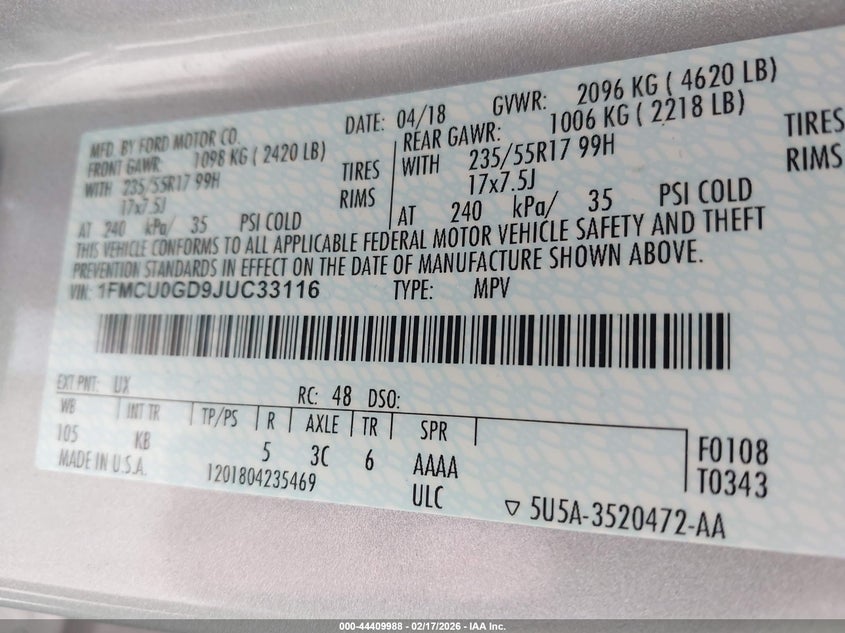 • 1FMCU0GD9JUC33116