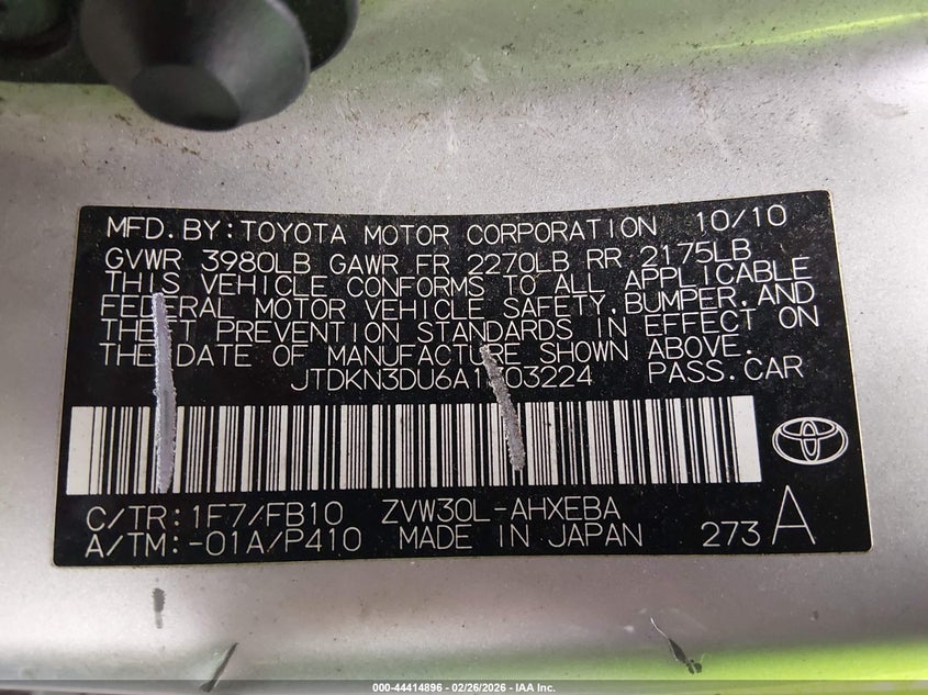 • JTDKN3DU6A1303224