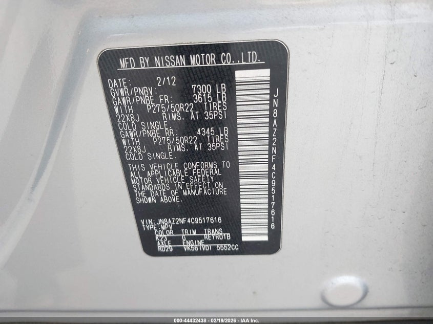 • JN8AZ2NF4C9517616