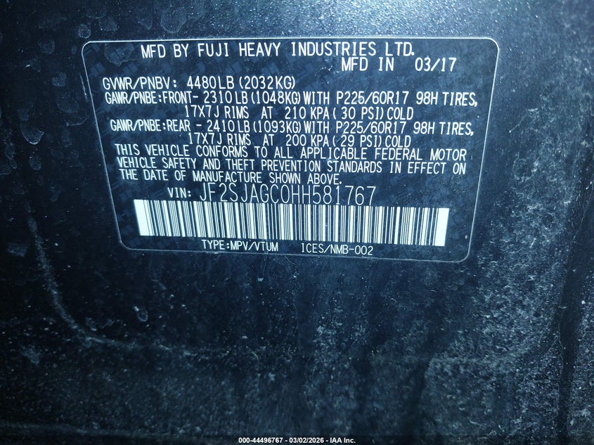 • JF2SJAGC0HH581767
