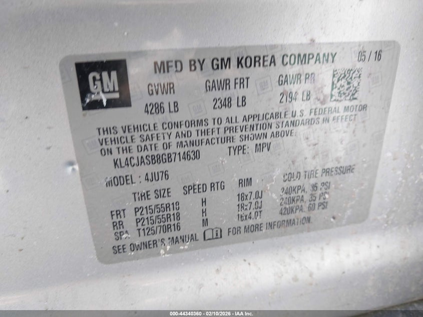 • KL4CJASB8GB714630