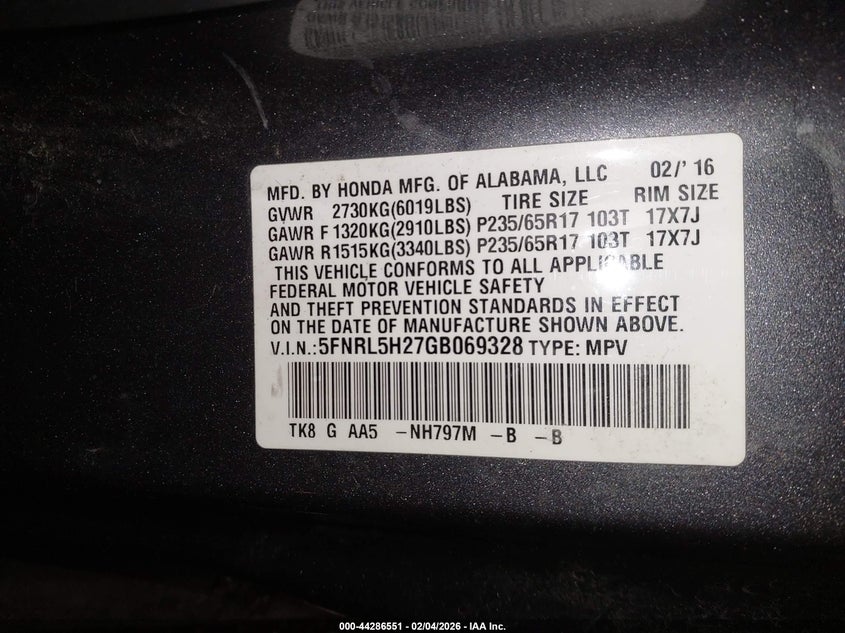 • 5FNRL5H27GB069328