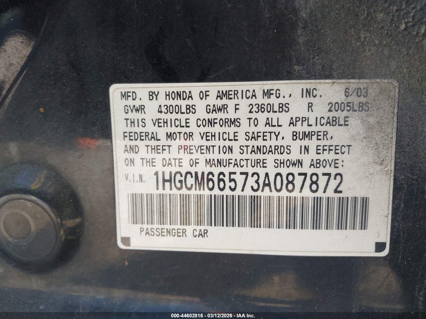 • 1HGCM66573A087872