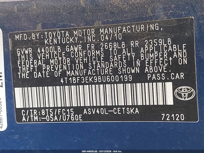 • 4T1BF3EK9BU600199