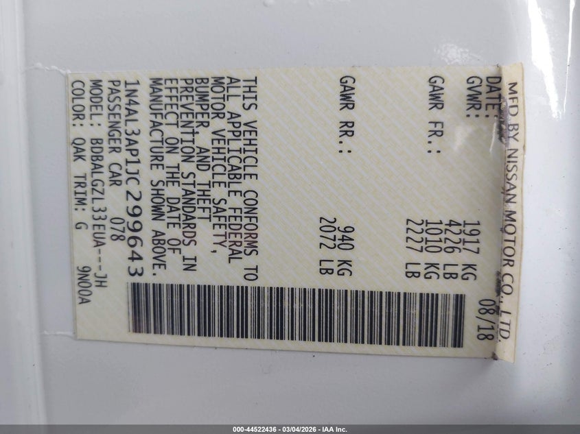 2018 NISSAN ALTIMA 2.5 S for Sale in Morganville, NJ