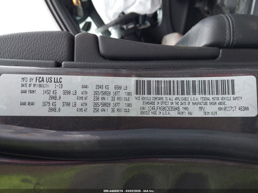 • 1C4RJFAG8KC635049