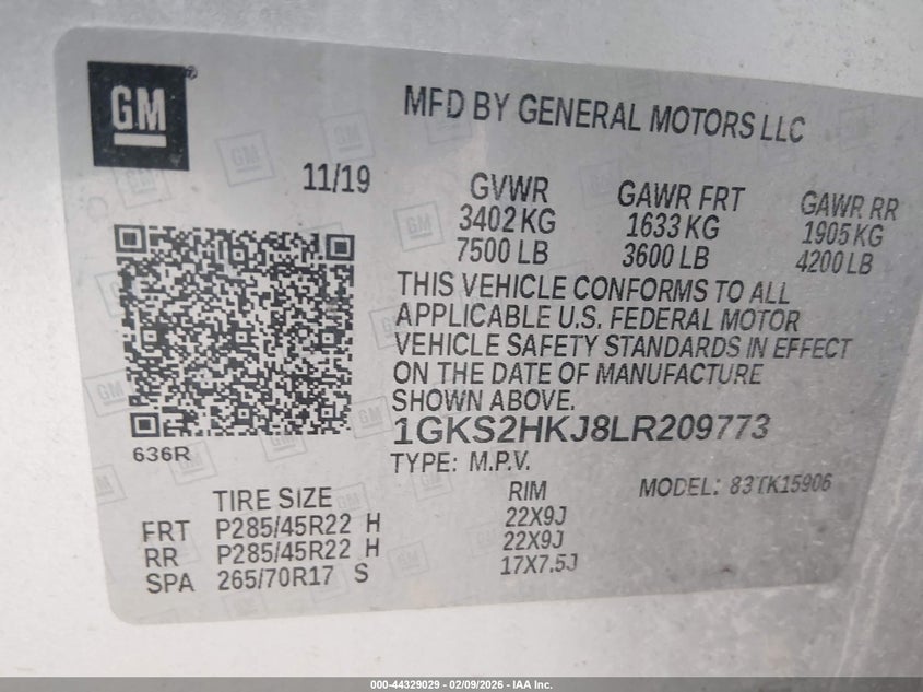 • 1GKS2HKJ8LR209773