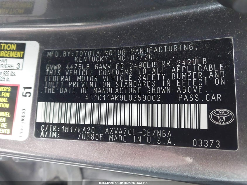 • 4T1C11AK9LU359002