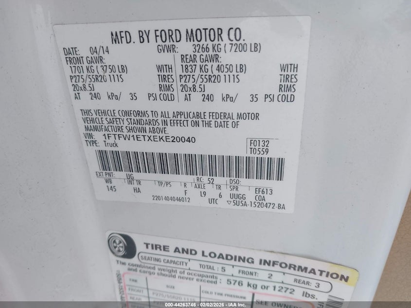 • 1FTFW1ETXEKE20040