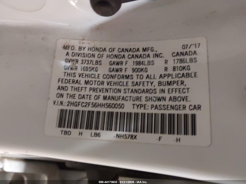• 2HGFC2F56HH560050