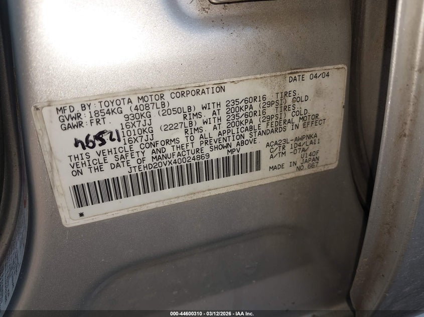 • JTEHD20VX40024869