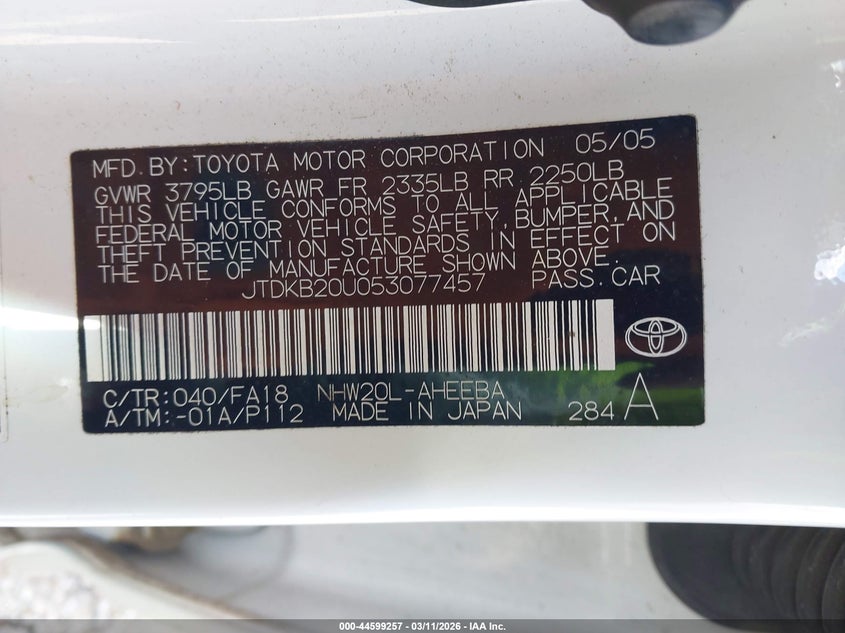 • JTDKB20U053077457
