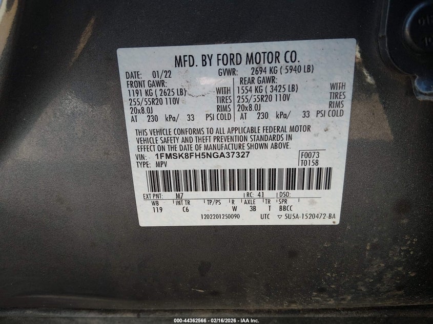 • 1FMSK8FH5NGA37327