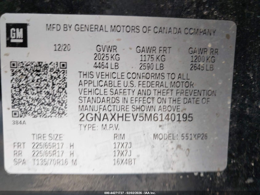• 2GNAXHEV5M6140195