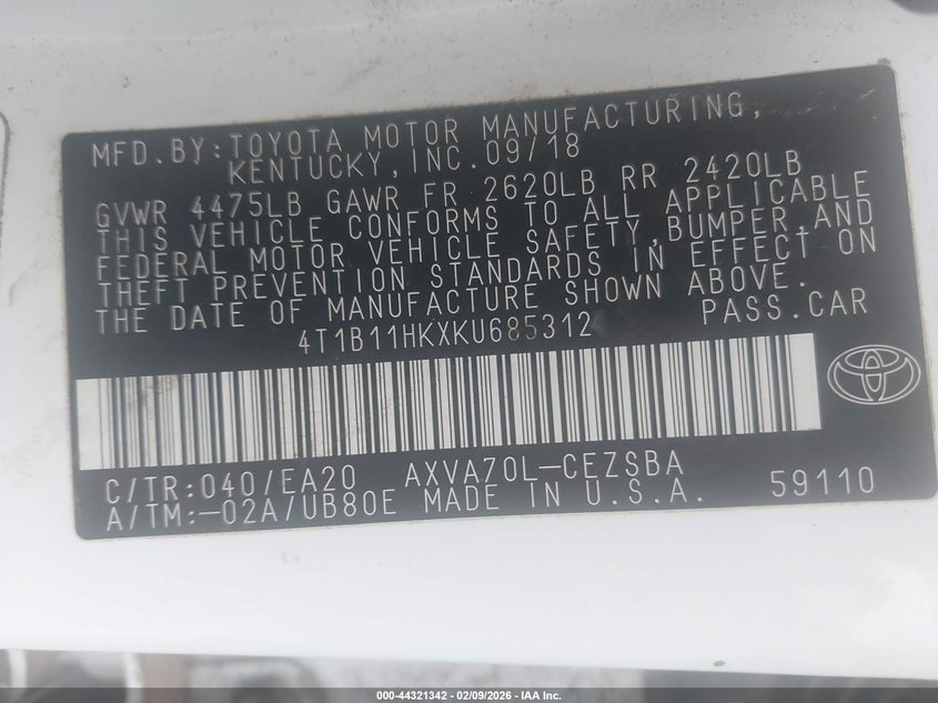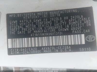 • 4T1B11HKXKU685312