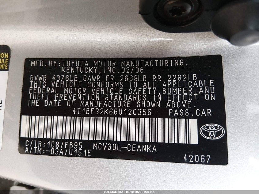 • 4T1BF32K66U120356