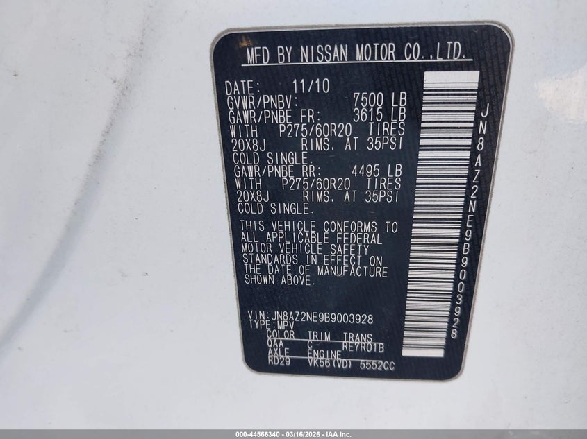 • JN8AZ2NE9B9003928