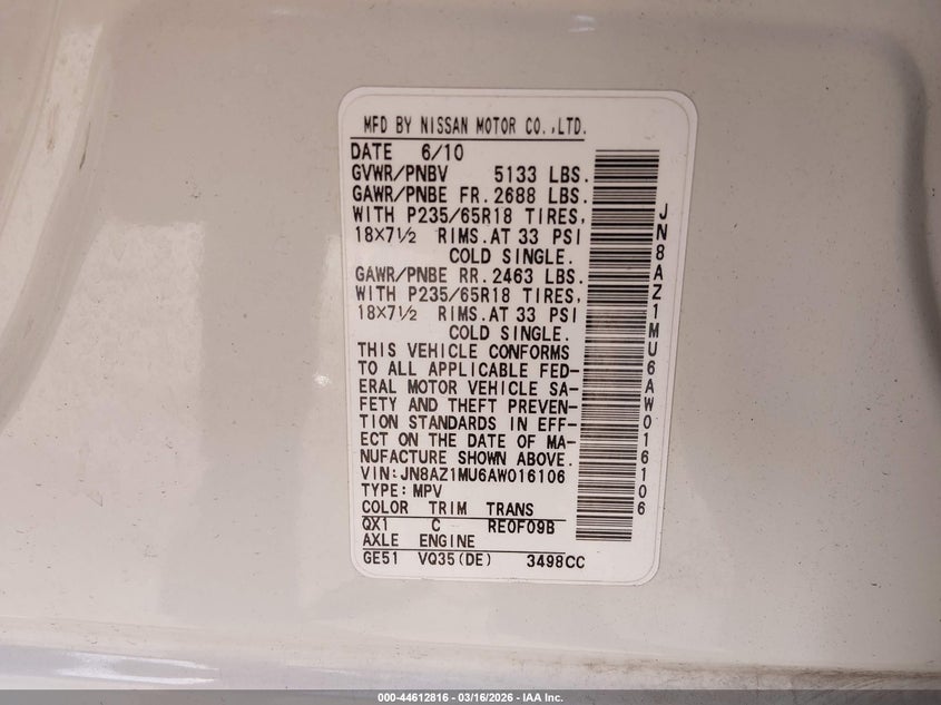 • JN8AZ1MU6AW016106