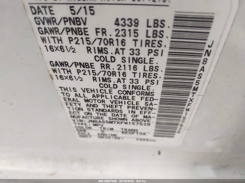 • JN8AS5MTXFW157528