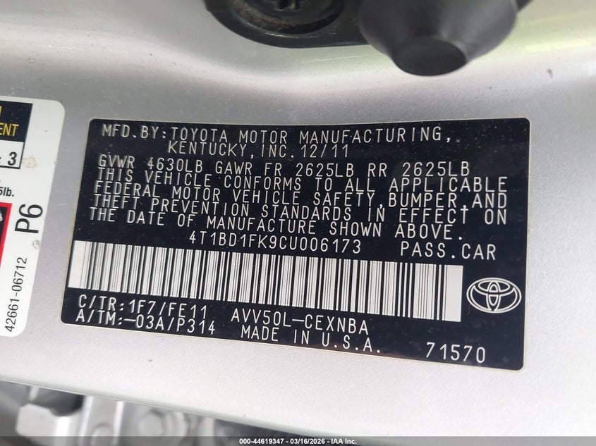 • 4T1BD1FK9CU006173