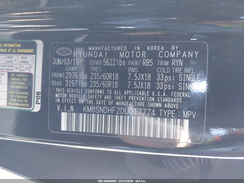 • KM8SNDHF2DU017774