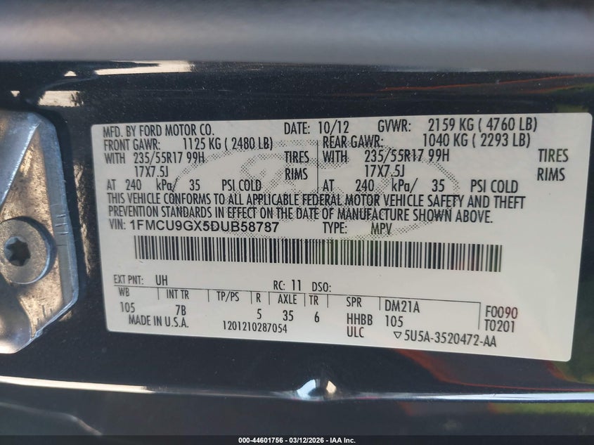 • 1FMCU9GX5DUB58787