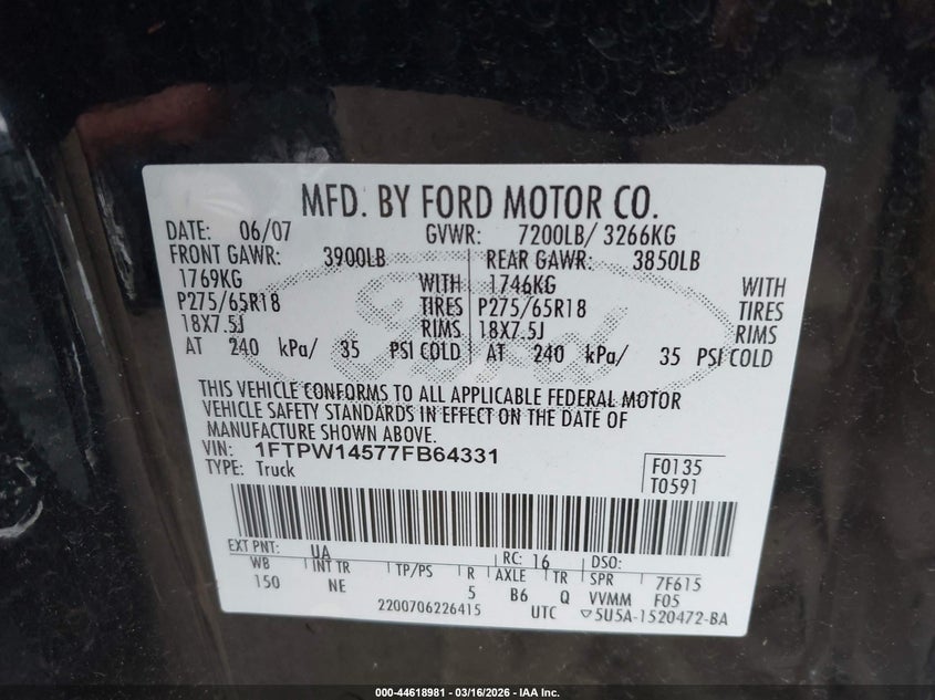 • 1FTPW14577FB64331