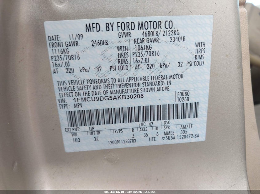 • 1FMCU9DG5AKB30208