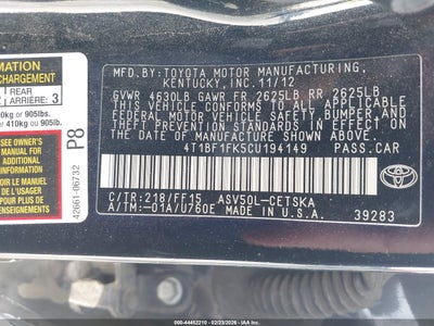 • 4T1BF1FK5CU194149