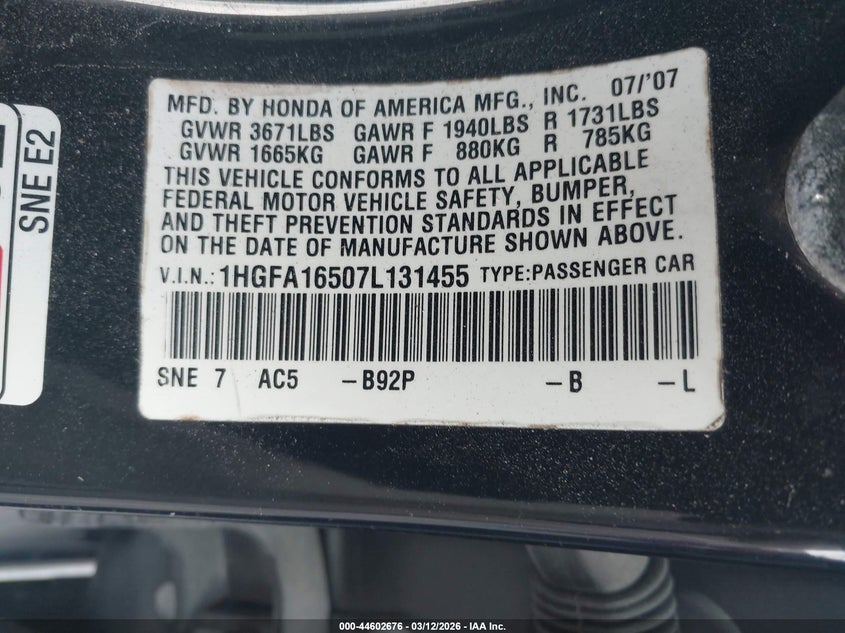 • 1HGFA16507L131455