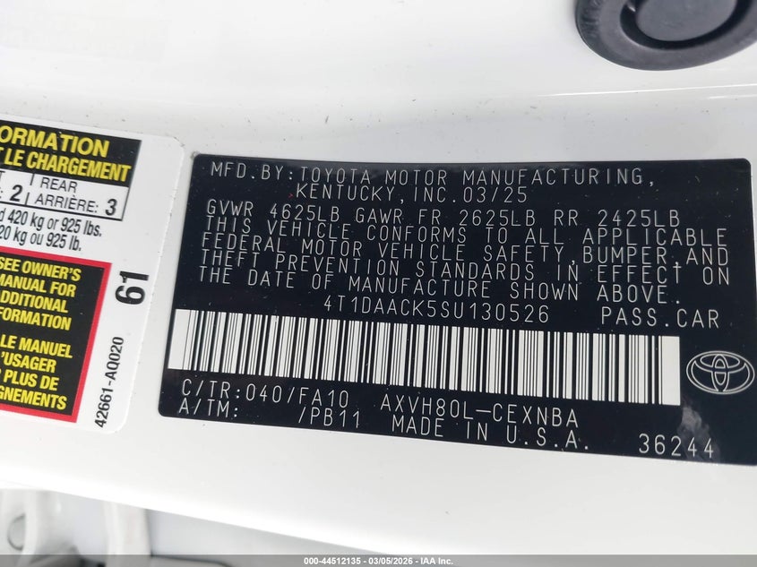 • 4T1DAACK5SU130526