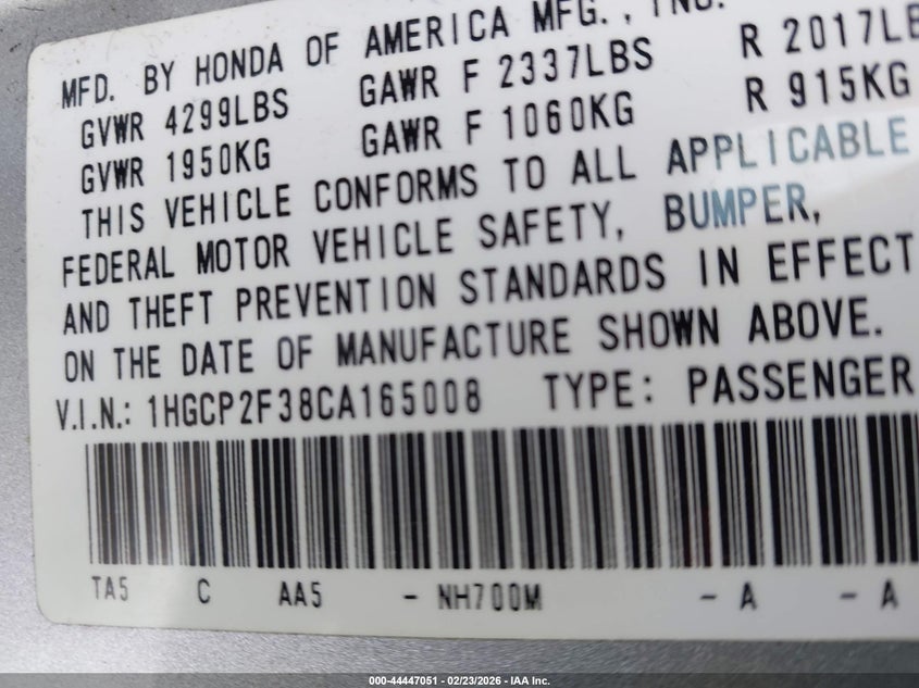 • 1HGCP2F38CA165008