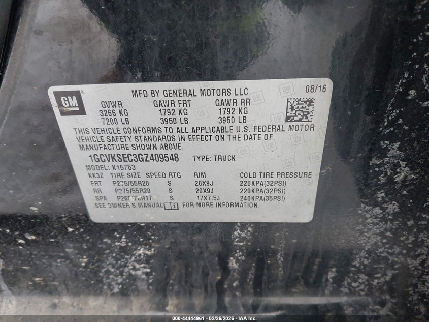 • 1GCVKSEC3GZ409548