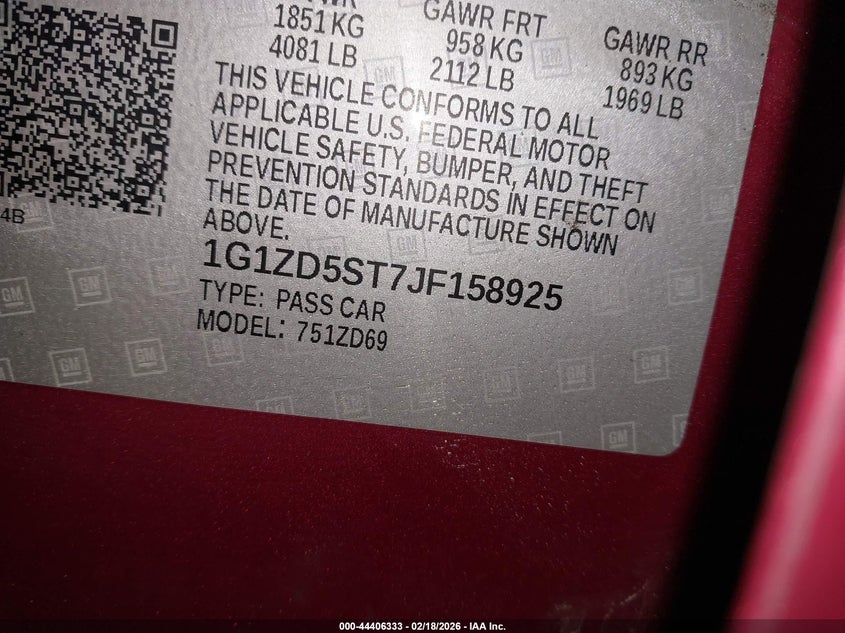 • 1G1ZD5ST7JF158925