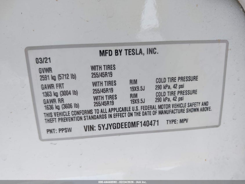 2021 TESLA MODEL Y LONG RANGE DUAL MOTOR ALL-WHEEL DRIVE for Sale in Florence, TX