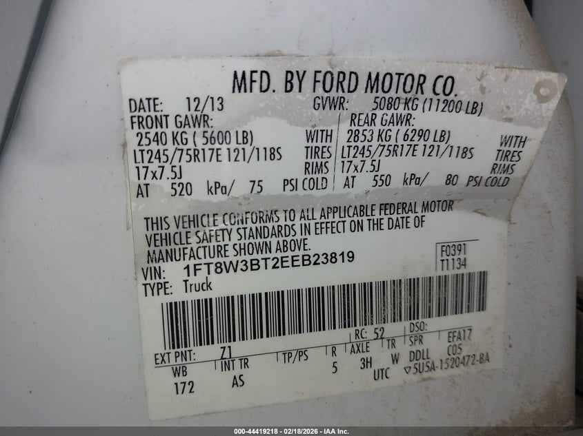 • 1FT8W3BT2EEB23819