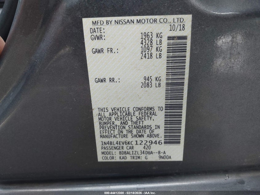 • 1N4BL4EV6KC122946