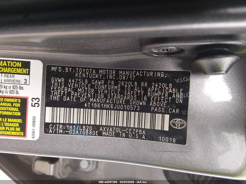 • 4T1B61HK6JU010573
