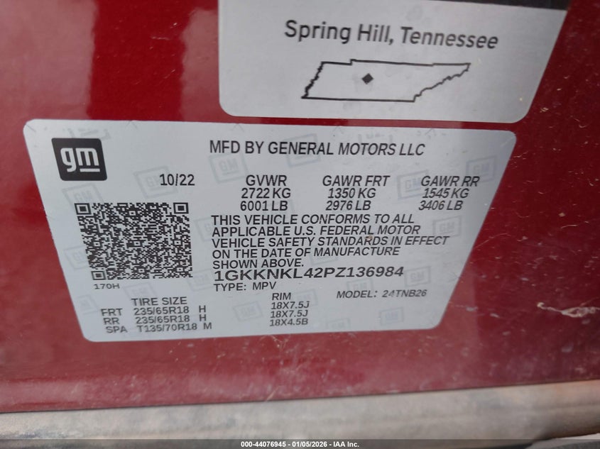 • 1GKKNKL42PZ136984