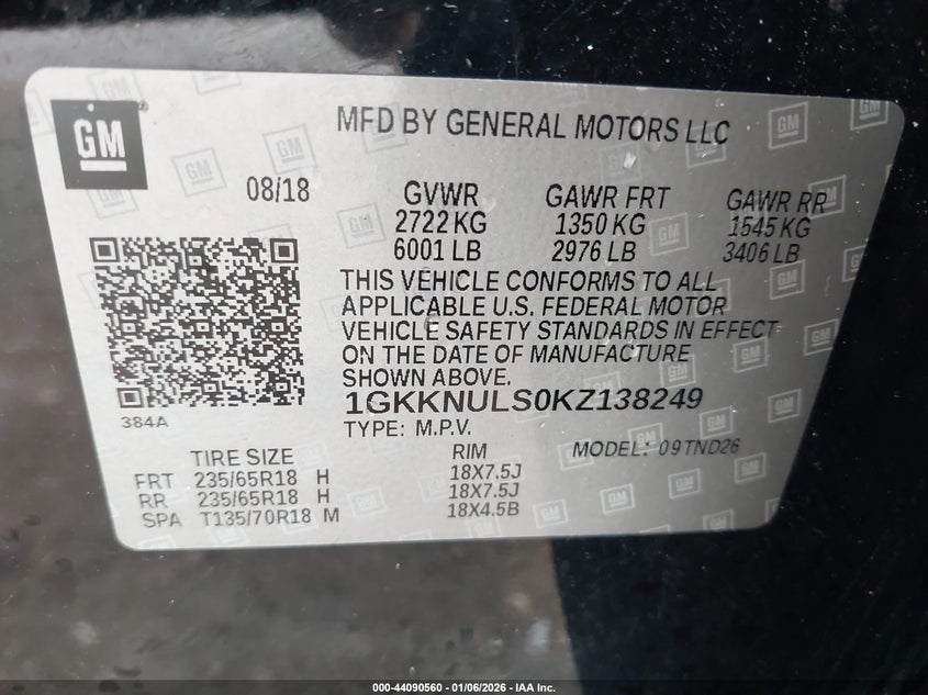 • 1GKKNULS0KZ138249
