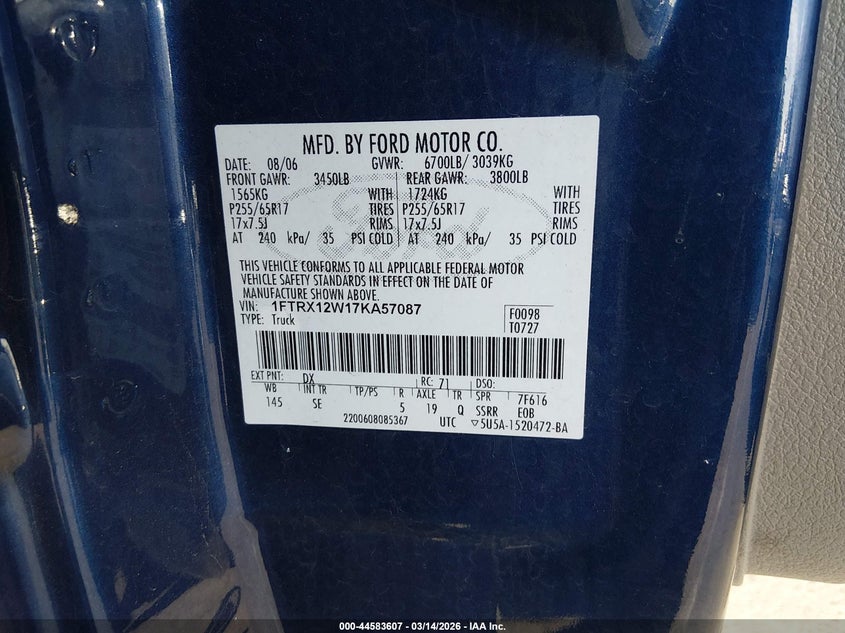 • 1FTRX12W17KA57087