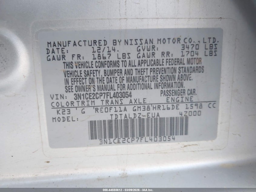 2015 NISSAN VERSA NOTE S (SR)/S PLUS/SL/SR/SV for Sale in Bay Point, CA