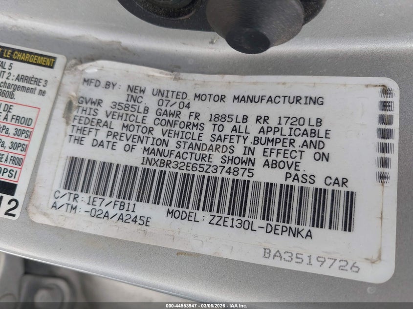 • 1NXBR32E65Z374875