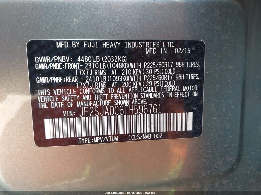 • JF2SJADC6FH596761